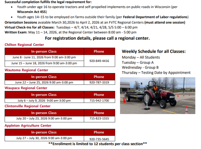 Youth ages 12–16 can sign up for the 2026 Tractor & Machinery Safety Course!